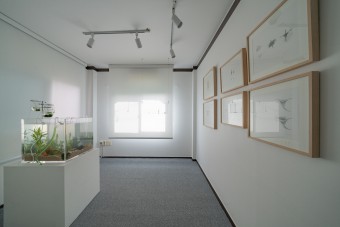 2022, Water tank, glass containers, bespoke pump system, organic materials, drawings, research elements, 150×65×65cm.