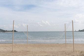 출품작 〈메아리, 바다 가득히〉는 8미터 폭, 4미터 높이의 그물 형태의 설치작품이다. 그물은 시민들의 사연을 바탕으로 제작되었으며, 진주와 비즈로 복잡하게 짜여 있다. 둥글고 빛나는 진주는 소중한 순간, 감정, 기억을 상징한다. 동시에 길쭉한 비즈와 진주의 배열은 문자 기호를 신호 배열로 입력하는 모스 부호를 나타낸다. 모스 부호의 각 펄스는 이제는 만날 수 없는, 소중한 누군가를 향해 쓰인 메시지이다. 그물의 섬세한 가닥 안에 얽힌 보이지 않는 목소리가 지금은 곁에 없는 그들에게 전달되길 바라며, 바다는 많은 사람에게 어려움과 위태로움의 공간임을 기억한다. 우리는 진주와 비즈의 투명한 반짝임을 바라보며 그들이 다시 메아리쳐 오길 기도해 본다. 작품은 해변 위, 바다와 하늘의 경계에서 자유롭게 출렁거린다. 섬세히 짜인 그물은 넋들이 떠난 먼바다를 향해 손을 뻗으며 그리움의 상징으로 하늘에 걸려 있다.